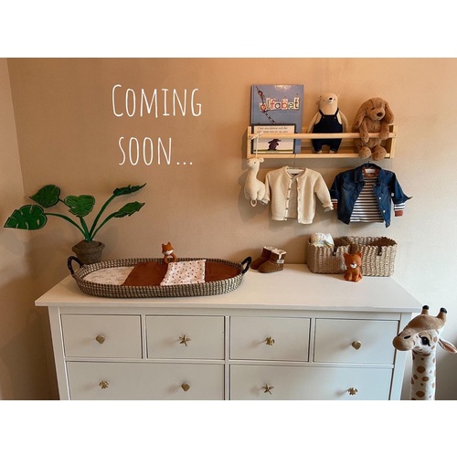 Dat is heel simpel gewoon de Ikea Hemnes commode (€50 op Marktplaats), daar heb ik gouden knopjes voor gekocht van Doing Goods.