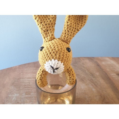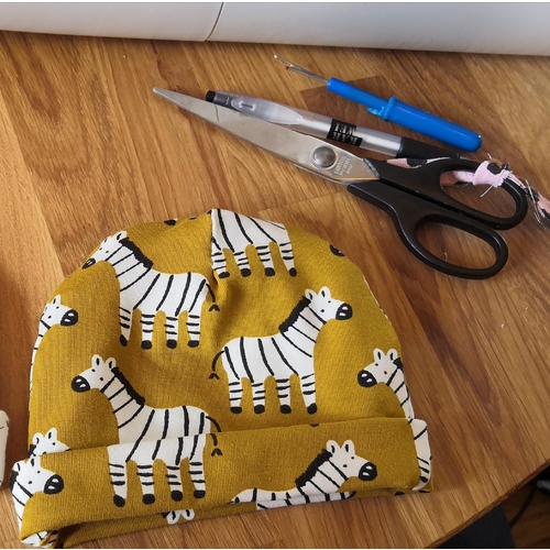 Ik heb helaas geen patroon. De afmetingen zijn 38 cm bij 6 cm. De ronding in de oortjes heb ik op de gok gedaan.