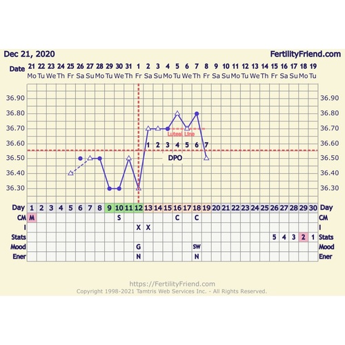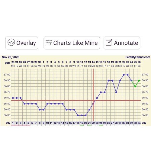 Ik hoop het zo! Ben idd ook heel benieuwd wat mijn temp morgen gaat zijn. 15 januari is mijn nod. Had het al drie januari verwacht maar kwam opeens twee weken bij ivm lange cyclus/late eisprong. Duurt laaang 馃檴 Jij had ook wel een dipje zie ik maar ook ongesteld. Hoeveelste ronde zit je?