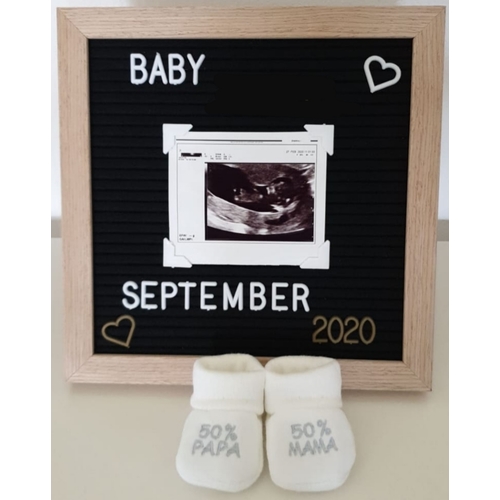 Wij hadden deze geplaatst met achter "baby" de achternaam van me vriend, dus ook van de kleine.