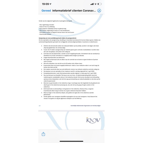 Hier ook net een mail gehad, controles worden minder frequent, alles moet zonder partner (ik heb alles al ingepland staan tot einde zwangerschap dus ben benieuwd welke ze gaan afzeggen).