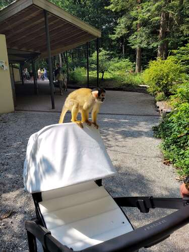 Wij zijn een maand geleden ook geweest (4 maanden oud), er heeft een aapje op de kap van de kinderwagen gezeten (we hadden wel de kap dicht, maar meer ivm de zon). Kind heeft geen aap gezien die dag, de blaadjes aan de bomen waren ook erg interessant 😂 als je een beetje doorloopt, ben je met een minuut zo dat losse apen-deel uit.. met een peuter lijkt het me juist erg leuk!