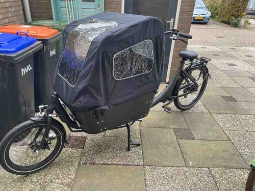 Hier een Babboe City E (2-wieler). Wij zijn heel blij dat we zijn gaan uittesten. Want anders hadden we voor de stabiliteit van een 3 wieler gekozen. Maar een 2 wieler vonden wij uiteindelijk veel fijner fietsen, vooral sturen en met de stabiliteit viel echt reuze mee. Fietsen op een 2 wieler is wel even wennen.