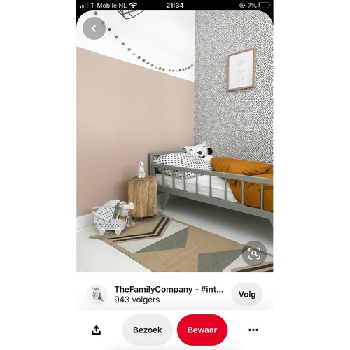 Wij hebben 'm ook, op 1 muur met daarvoor de kledingkast om het wat te breken. Super leuk!