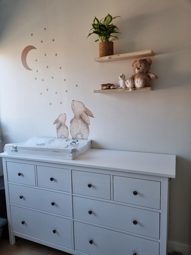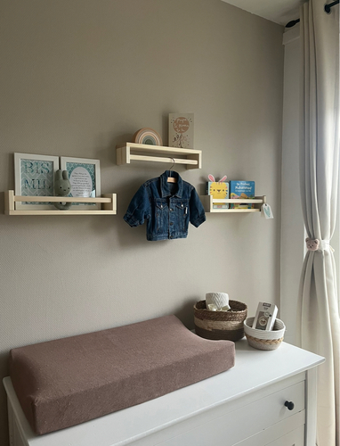 Wij hadden nog een halve emmer in de kleur taupe (laten mengen bij praxis) over en hebben die toen zelf aangelengd met wit. Daar kwam deze prachtige beige kleur uit 😍 heel blij mee!
