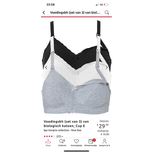 Ik vond de voedings bh's van bonprix wel heel fijn! Ik had 95F besteld. Had geen tussenstukjes nodig, bij normale bh doe ik dat wel. Koop dan iets kleiner want kleinere maten hebben altijd leukere bh's 😂