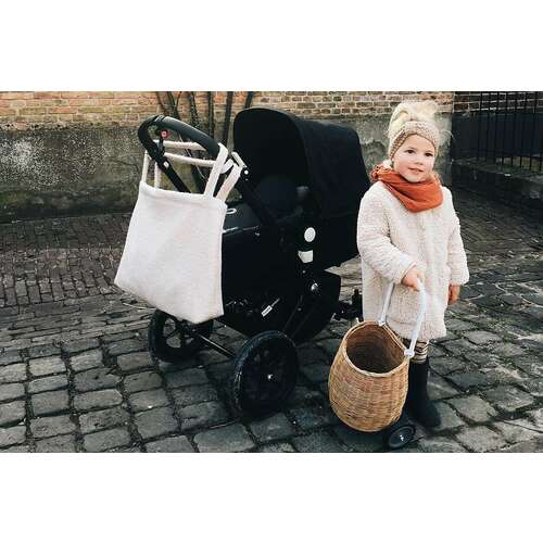 Studio Noos tas/zak/luiertas. Hier gooi ik straks het een en ander in en onderin kan ook een hoop. Je hangt deze gewoon over het handvat zeg maar.