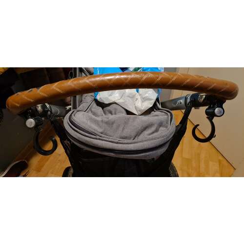 Ik heb A3 tussenhaken, daar hing ik een tas aan toen ik de wagenbak nog gebruikte. Nu met het zitje gebruik ik een boodschappennet die bij de wagen hoort. Via MP gekocht