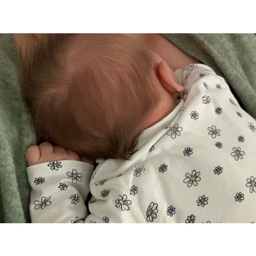 Hier ook onwijze maagzuur, echt van die vreselijke aanvallen. Deze foto is van toen onze dochter 2 weken oud was. Ze werd zoals je kan zien met aardig wat haar geboren :)