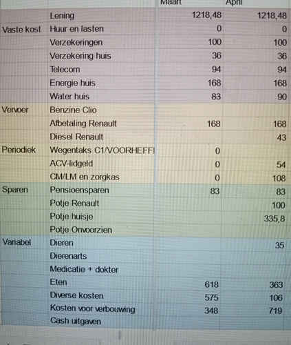 Wij hebben een excel lijst met daarin de vaste kosten, die zijn er elke maand, en een schatting van de variabele kosten: bijvoorbeeld boodschappen, dat kan bij ons nogal eens afwijken.