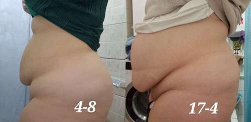 Hieronder op de foto kun je het verschil zien wat 4 maanden heeft gedaan voor mijn buik.