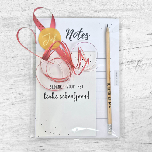 Ik had leuke schaaltjes gevonden en daar toffees bij gedaan. Met een kaartje bedankt voor het toffe(e) schooljaar!