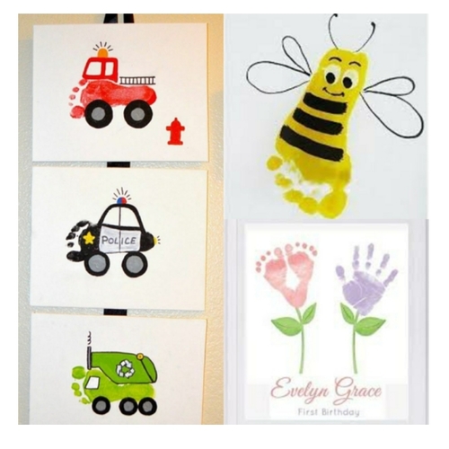 Voetjes zijn het eenvoudigst.. dus pak wat verf... En maakt een leuke tekening..