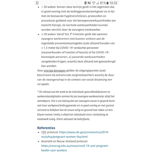 Ik zou het ziekenhuis het liefst mijden. Echter volgt mijn werkgever de adviezen van het rivm op, die voor zwangeren gelijk zijn als voor niet-zwangeren.