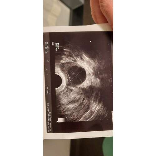 Hey! Niet om stressen hoor, op mijn eerste echo was ook een grote cyste te zien; en die is inmiddels spontaan verdwenen 😊. Het is vaak het omhulsel van het gesprongen eitje.