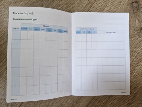 Ik houd deze waarden bij in het boekje. Na de maaltijden betekent 1 uur. Nu ...