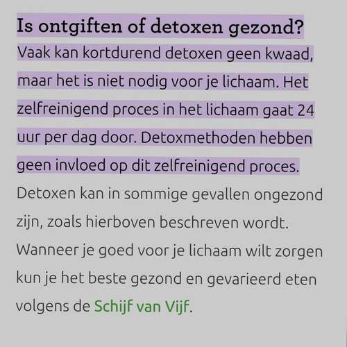 Zelfs op de website van het Voedingscentrum van Nederland staat een stuk over het ontgiften van je lichaam.