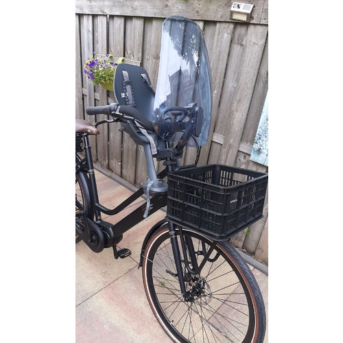 Ik vond het ideaal om minder zwaar te trappen met een kind voorop en de weekboodschappen verdeeld over de grote mand voorop en mijn fietstassen.