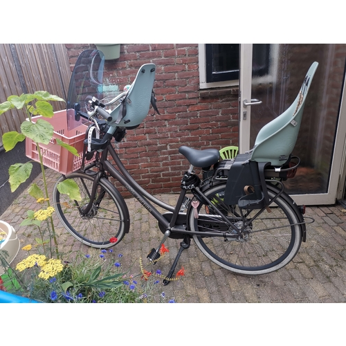 Ik heb het even opgezocht en het is inderdaad geen mama fiets. Op zich ging het altijd prima. Mijn dochter is nu bijna te groot voor het achterzitje. Als de volgende mini in december geboren wordt koop ik zo’n kussen met rugsteun voor achterop. (Of een bakfiets, maar dan moet ik eerst nog iemand overtuigen dat het nodig is en bedenken waar ik hem ga zetten...)