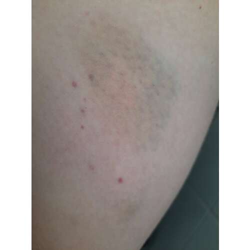 Spuit nu nog alles in mn rechter been omdat links( trombosebeen) en rond mn buik nog te veel oedeem zit. En heb vrij grote blauwe plekken. Maar hopelijk kan ik tzt weer in mn buik prikken; dat geeft meestal minder pijn. En omdat de versterking van factor 8 waarschijnlijk zwangerschaps gerelateerd is hoop ik straks weer zonder te kunnen leven:) al moet ik een ooit volgende zwangerschap ( na nu eerst minimaal 9 maanden herstel) de gehele zwangerschap 5000ie spuiten. :) hopelijk dan zonder uitgebreide trombose en long embolien.