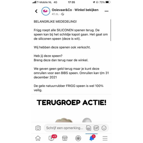 De frigg site heeft zelf ook een mededeling op hun instagram pagina gedeeld dat het enkel om de silicone frigg spenen gaat inderdaad en dat je hun een mail moet sturen, en je geld daarvoor terugkrijgt