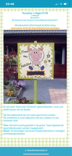Mijn moeder had ook een gender reveal en een babyshower toen zij voor het eerst oma werd. Een geboortebord kan er ook nog wel bij.