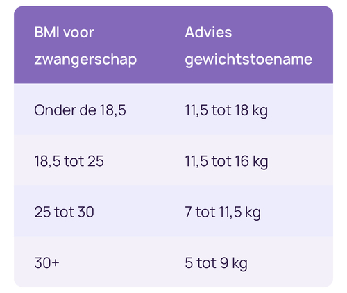 Die richtlijn bestaat uit wat je lichaam nodig is voor je baby (dus gewicht extra vet, extra bloed, placenta, de baby etc). Het kan zijn dat je meer aankomt door de zwangerschap door bijvoorbeeld vocht vasthouden etc.. zolang je een gezond leefpatroon aanhoudt blijf je vaak wel in de buurt van de richtlijn en zijn de kilo’s na de bevalling ook weg (immers zwangerschap gerelateerd)