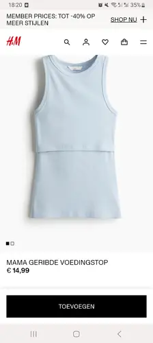 Ik heb die van h&m en een maatje groter werkt goed! De mouwloze topjes met sluiting vind ik niets en die die je openvouwt is slechte kwaliteit. De t-shirt vind ik wel fijn, stuk dikkere srof ook en mooie ronde hals. Soms wat zoeken, maar je ziet niets als je borstvoeding geeft want te srof valt moou rond je tepel!