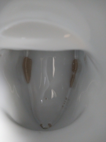 Klopt, ik bedoel die 2 donkere vlekken. Misschien is het op deze foto beter te zien. Er komt dus wel urine langs
