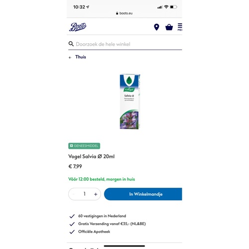 Verder is het goed opletten welke salvia druppels je koopt, je hebt ook varianten die helpen tegen de overgang maar je moet echt de gene hebben waar alleen “salvia” opstaat, zoals op de foto