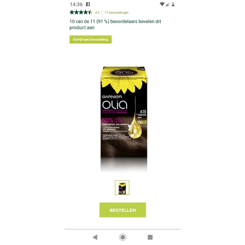 Ik neem gewoon bruin dan word het mischien kastanje maar is altijd beter dan half paars. Verder is het ook verbleekt. Ik neem dan gewoon 2 pakjes dan kun je het altijd nog eens doen. https://www.garnierzorgvoorjezelf.nl/haarkleur/beauty/garnier/olia