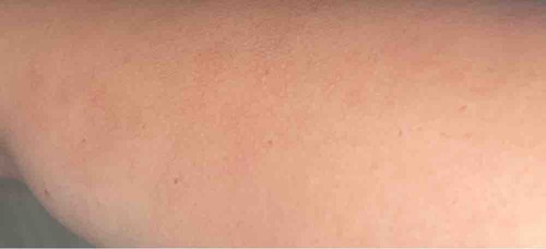 Het lijken rode vlekken? Of zie ik het niet goed en zijn het bultjes / blaasjes? Mochten het vlekken zijn Dan vermoed ik gewoon van de warmte in de huid. Ik heb dit heel erg op mijn bovenbenen als ik in de zon ben geweest.