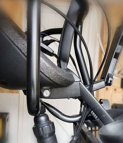 Ik liep tegen hetzelfde probleem aan🙄😅 Ik heb op mijn family fiets een ander stuur laten zetten. Een moederstuur van het merk steco. Als je even googled op steco ukkie mee stuur kun je hem vinden!