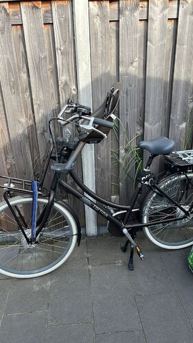Is dit een moederfiets? Die hebben altijd wat meer ruimte dus dat zou je kunnen proberen als dit geen moederfiets is. Ik vind het verder altijd makkelijk om op te stappen door eerst met een voet op het pedaal zo twee stapjes te steppen en er dan op te gaan misschien helpt dat ook voor jou. Dus zegmaar linkervoet op linker pedaal en dan met rechtervoet ook aan linker kant van de fiets steppen. (Hopelijk duidelijke uitleg 🤣) en misschien eerst dat ff proberen met een leeg kinderzitje zodat jullie niet samen vallen als t voor jou niet blijkt t werken