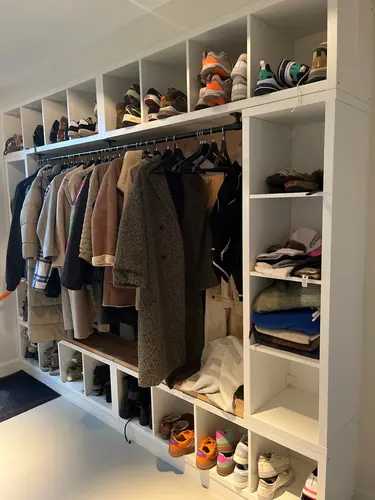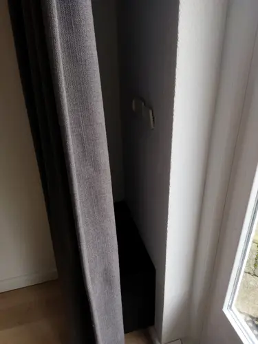 Wij hebben achter het gordijn naast de achterdeur een schoenen opbergvak van de Ikea. Dit zat er al van de vorige bewoners, maar is echt ideaal zo uit het zicht! Eventueel zou je er ook meerdere boven elkaar kunnen doen.
