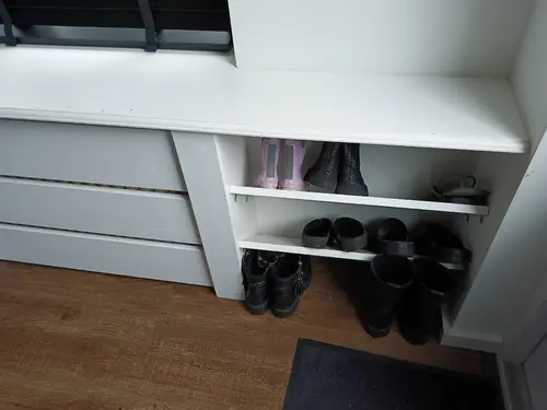 Schoenen uit bij de achterdeur, meenemen naar de gangen en daar parkeren in het schoenenrek 😉