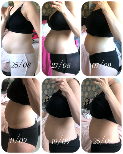 Ik ben 20kg aangekomen waarvan 9kg babies+vruchtwater was. De eerste twee weken na mijn bevalling zag ik er echt nog mega zwanger uit! Ik heb dan ook wel een tweeling dus dat is ook wel even anders haha. Die overige 11kg ben ik nu 10 maanden later nog niet kwijt (niet geprobeerd ook), maar met zo'n 6-7 weken zag ik er niet echt zwanger meer uit. Enige foto die ik heb is deze haha, dit was ong een week erna