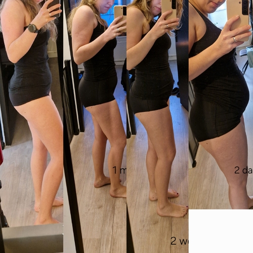 Ik was door borstvoeding heel snel al het gewicht kwijt (extra zelfs), maar je buik ziet er ook boller uit doordat de buikspieren nog niet zo snel terug naar de juiste positie trekken. Dat gaat voor de meesten ook alleen met flink tijd en (speciale veilige) oefeningen. Zorg dat je daarvoor een betrouwbare cursus hebt want met foutief trainen kun je juist het herstel tegengaan.