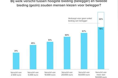 Sommige mensen geven aan niet te willen verkopen aan een belegger, maar funda heeft hier een mooie blog over geschreven na een onderzoek. 75% van de mensen zegt liever te verkopen aan een particulier (hiervan heeft 22% hun huis niet tekoop staan), maar als de belegger het hoogste bod heeft verkoopt 54% van deze mensen (54 van 75%) hun huis alsnog aan de belegger.
