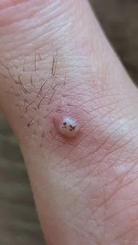 Ja dat is ongeveer wel de omschrijving ja. Gok dan ook een ingegroeid haartje