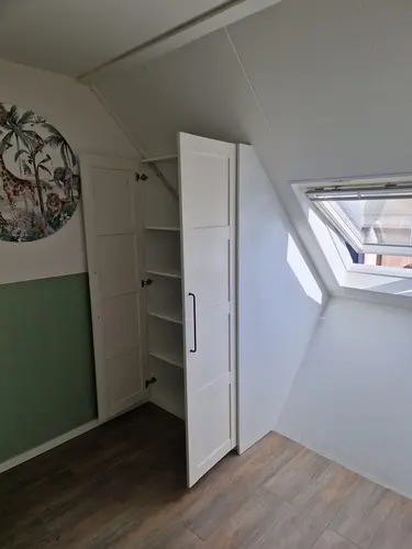 Dit is een ikea pax kast die we helemaal op maat hebben laten inbouwen door familie. Prima kwaliteit en je kan er dus van alles mee als je handig bent😋
