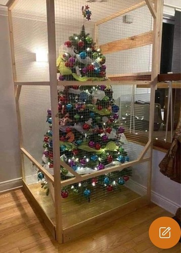 Wij hadden een kitten die om onverklaarbare redenen niet van mandarijnen hield 🤷🏼♀️. Dus toen een kring van mandarijnen om de kerstboom gelegd, zag er nog best leuk uit. En ze bleef toen dus weg bij de boom. Wie weet werkt het bij jouwe ook? In elk geval het proberen waard…