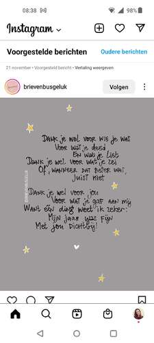 Ja in gedicht vorm is wel leuk alleen ik heb ooit geprobeerd om een gedicht voor hem te schrijven en toen moest hij keihard lachen om de rijmwoorden 🤣🙈