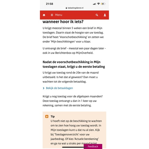 Maar ik krijg de toeslag altijd een maan ...