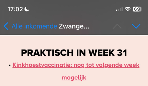 Ik lees net in de mail van Ouders van Nu, dat kinkhoestvaccinatie nog maar mogelijk is tot 32 weken. Terwijl daar in de tekst niets over staat. Volgens mij klopt deze mail dus niet. Weet iemand tot wanneer je deze kan halen? Volgens mij gewoon tot het einde van je zwangerschap?