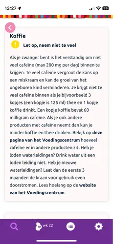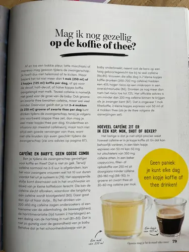 Ik drink al m'n hele zwangerschap (nu 39 weken) 2-3 cappuccino's per dag. Soms is met minder namelijk geen of maar 1. In ieder geval niet meer dan maximaal 3.