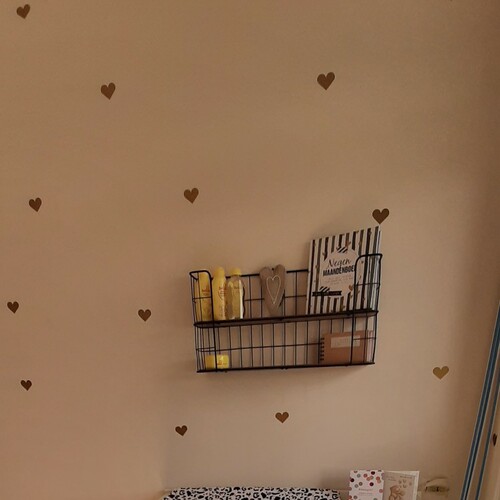 Wij hebben het zo opgelost: alle gaten dichtgemaakt. Muren wit geverfd en daarna deze schattig gouden hartjes erop geplakt. Iedereen die het gezien heeft, dacht in eerste instantie dat het behang was 😉