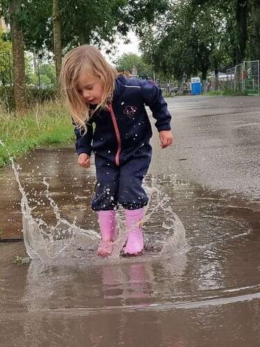 Wij hebben ze al van kleins af aan... ze is nu 3. Bij ons geen lekkage. Voor de winter hebben we nu enkel de broek gekocht aangezien ze zindelijk is. Alleen die bandjes onderaan gebruiken we eigenlijk niet. Enne... als je zo gaat springen als op de foto dan moet je de broekspijpen niet IN de laarzen doen 😂😂😂 natte sokken 🙈