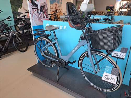 Hier ook de Cortina e-common family. Erg zwaar zonder accu, maar met de accu op stand 1 (van de 5) fiets het echt al heel lekker! Accu gaat prima lang mee en frame is lekker ruim ook met zwangere buik en kinderstoeltje. Wij hebben ook nog een kratje voorop maar hij blijft prettig en stabiel fietsen.