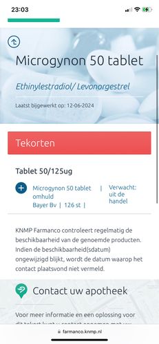 Deze site gebruiken apothekers, het zal dus echt wel uit de handel zijn 🥺 andere vorm van anti-conceptie (zoals een mirena of implanon) ook geen optie voor je?